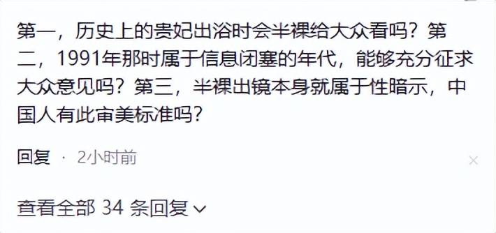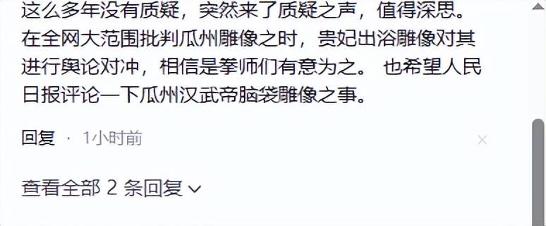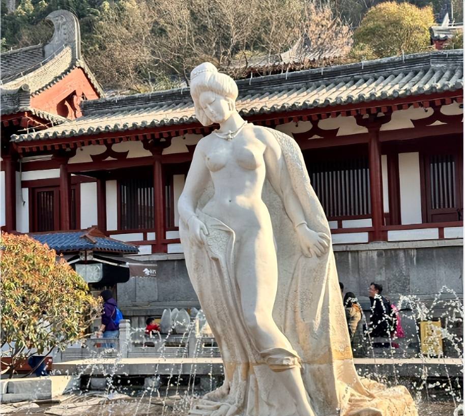 事故闹大之后,网友们的商榷也不少,有人照旧以为这雕像有点恶俗,这史册上的杨贵妃洗沐也不成以光着身子给外人看吧?