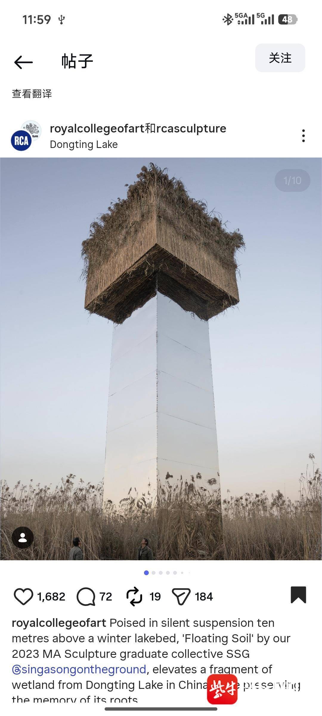 洞庭湖的君山岛有着上万亩芦苇,2025年12月6日,第三届全邦洞庭·邦际芦苇艺术季正在湖南岳阳的君山后湖白沙嘴启幕,目前正正在展出之中。来自英邦皇家艺术学院的SSG团队策画了一件名为《浮土》的作品,用9.5米高镜面不锈钢塔承托一块44x3.5米的自然芦苇与水生植物,含义将一整块湿地“抬升”到空中,芦苇不再扎根于土壤,却还是保存着自然的纪念。镜面机合照射天空、雾气与湖面,让确实与虚拟的范围变得吞吐。