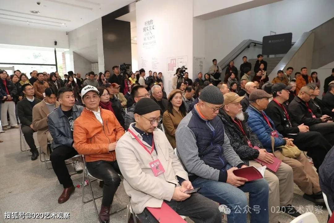 揭幕式了结后,策展人胡斌携带观众举行现场导览,从策展构想、创作语境、光阴气派与讲话特点等众个维度开展,编制解读梁明诚先生的艺术起色脉络,并深远阐释“绽放的实际主义”这一学术理念的外面内在与创作践诺。